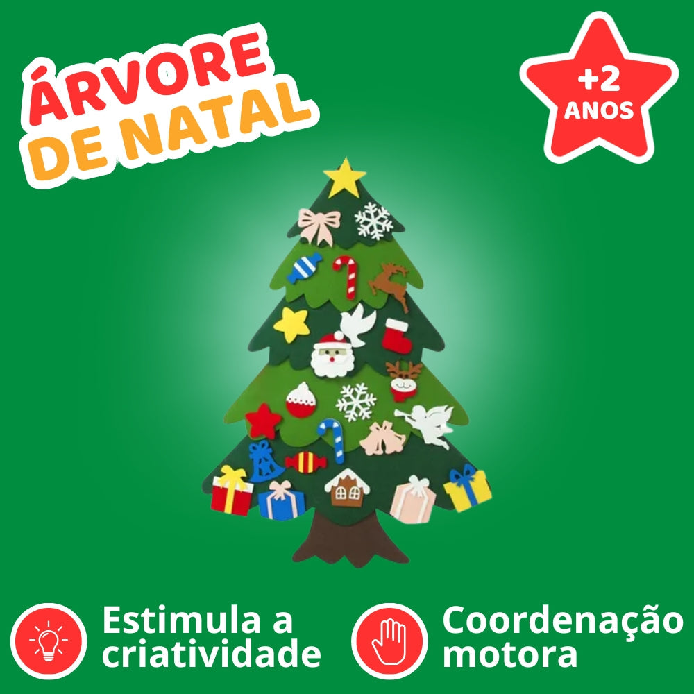 Produzida com feltro 100% antialérgico a Árvore de Natal para Aprendizado e Diversão proporciona aos pequenos uma experiência de montagem única, o velcro é de alta fixação e facilita no processo da imagem.