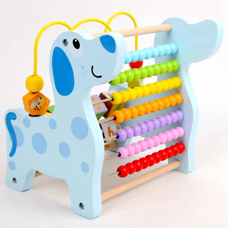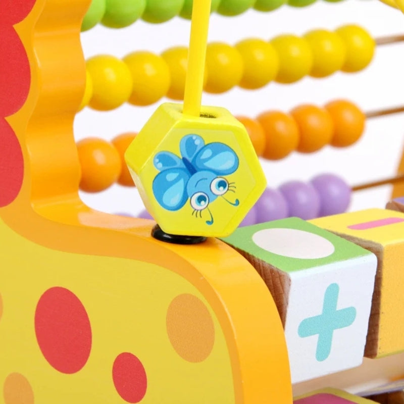 01 Brinquedo Educativo Multifuncional de Madeira 3 em 1 | Abáco | Labirinto Amarado e Cubo Giratório