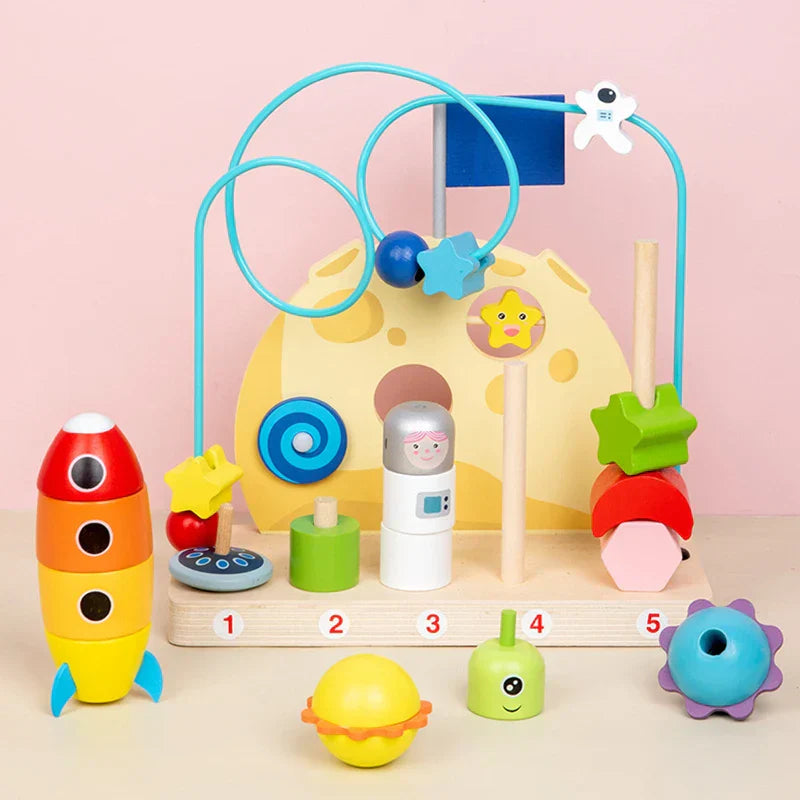 01 Labirinto Aramado Aventura Espacial Brinquedo Educativo de Madeira