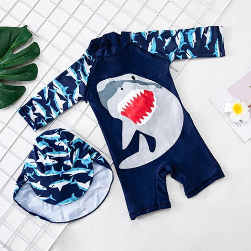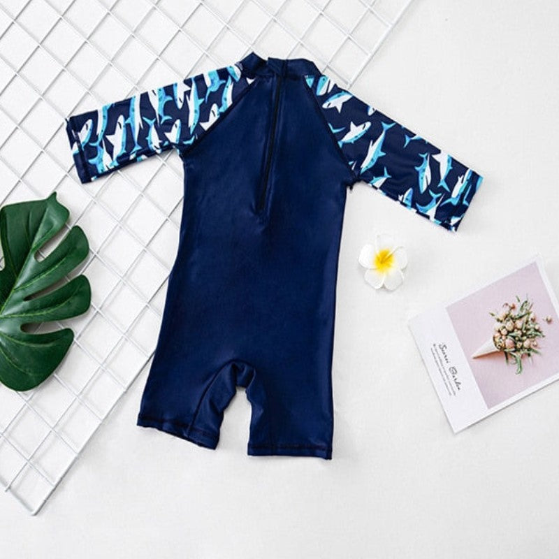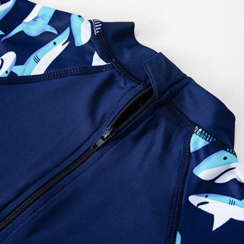 Macaquinho de Praia Infantil Manga Longa Tubarão a eescolha ideal para proteger a pele sensível do seu bebê enquanto ele se diverte sob o sol. Com um design prático e cheio de estilo, essa peça oferece conforto e segurança nos dias de praia e piscina.
